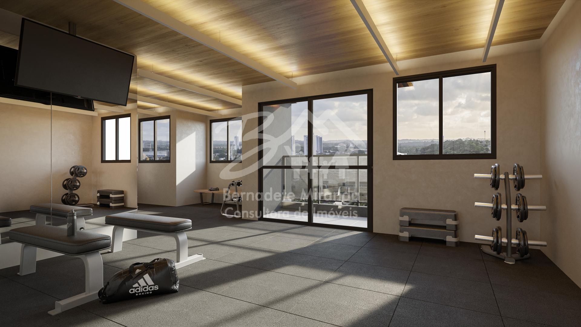 ROOFTOP COM: academia coberta com espaços para cárdio e força, integrada ao terraço descoberto com espaço