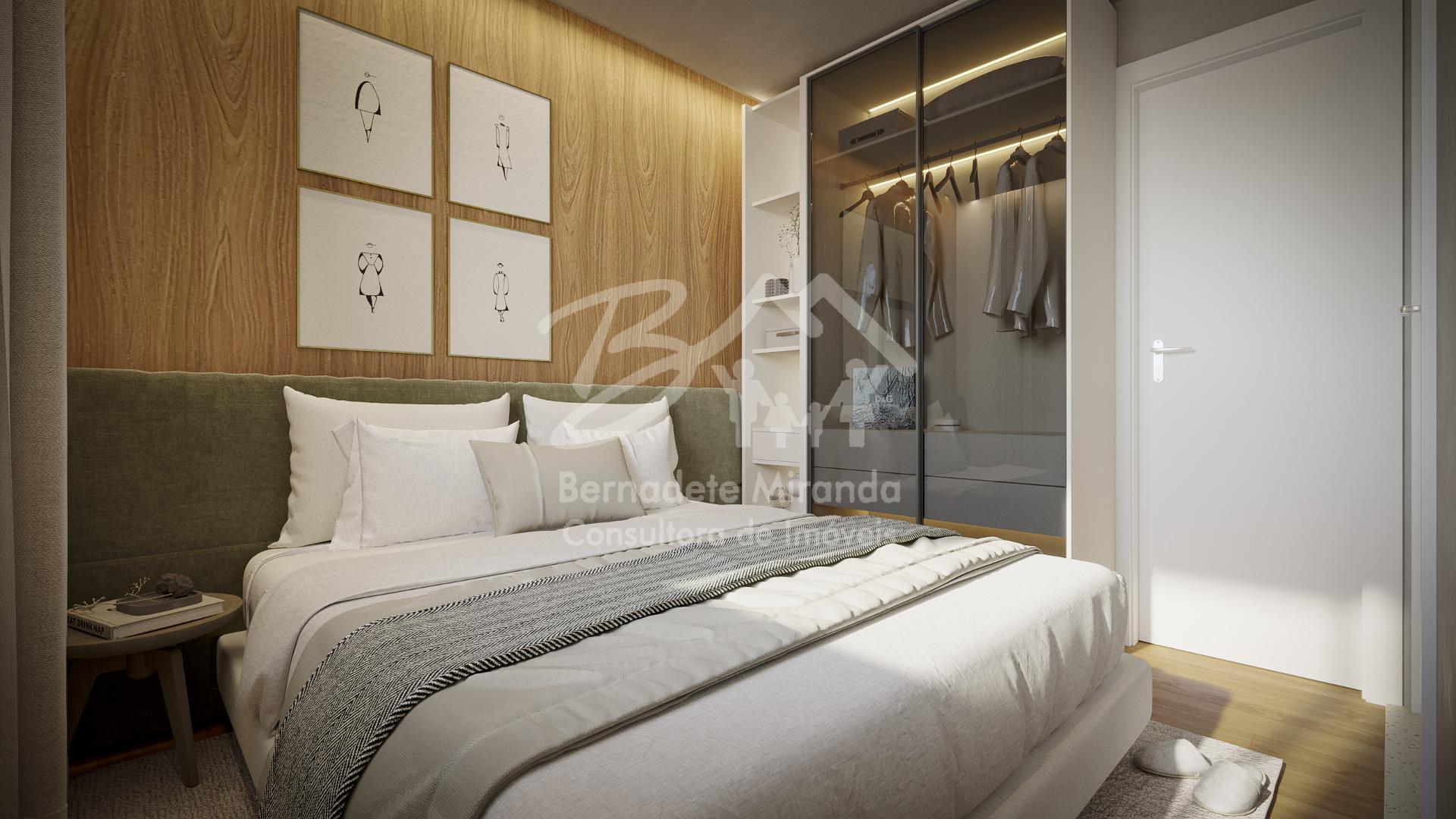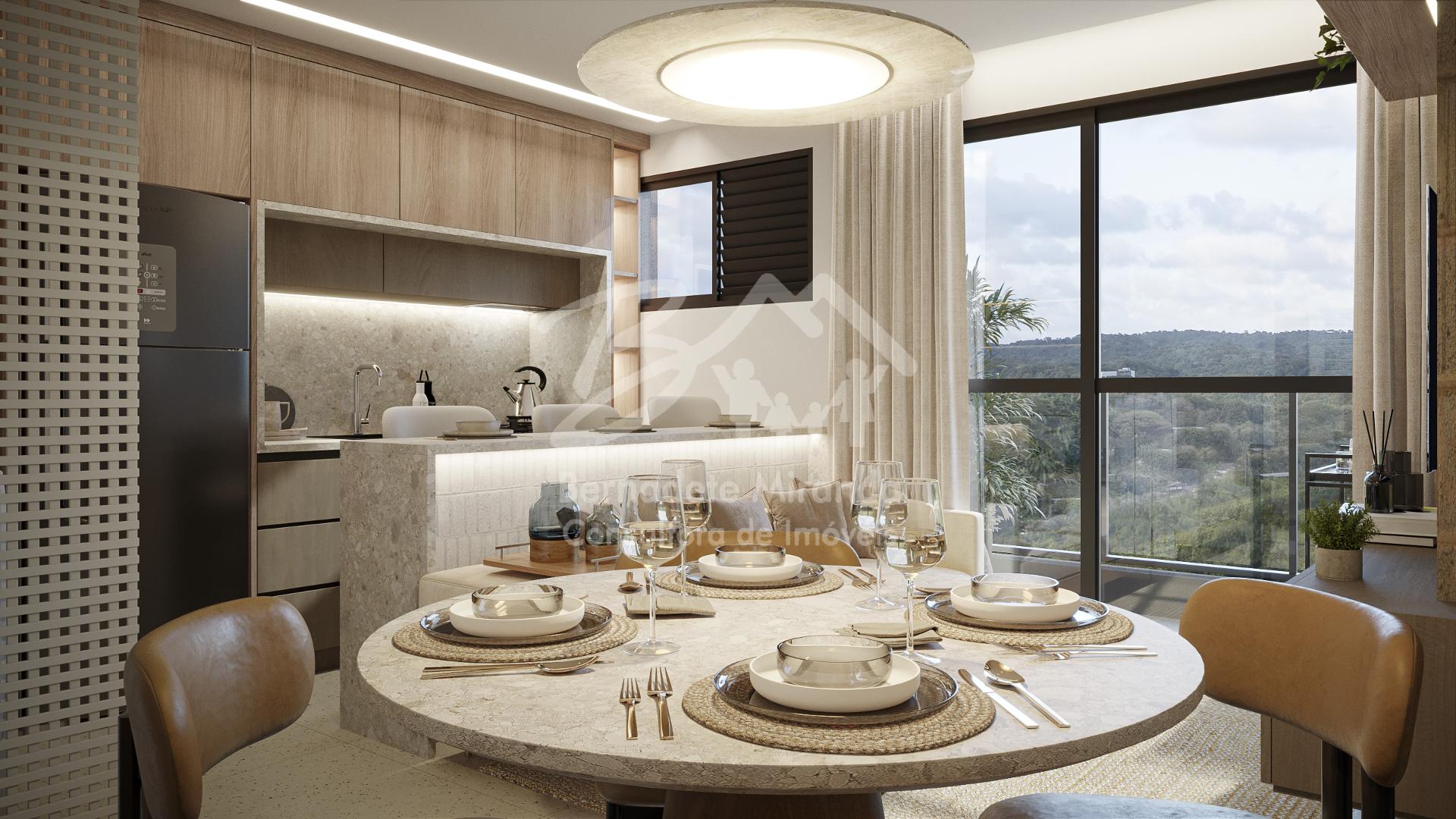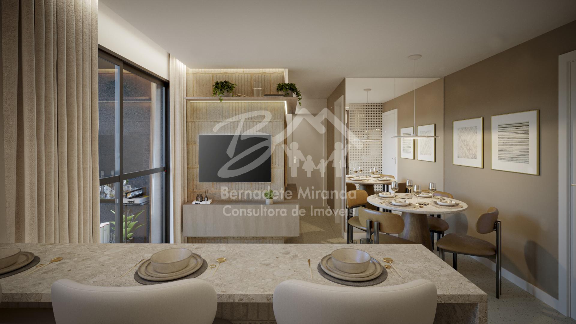 TIPO: 02 Quartos, sendo 1 suíte , varanda com peitoril em vidro, sala para 02 ambientes, wc social, cozinha integrada